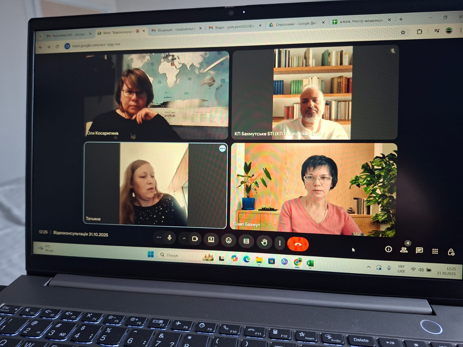 31 жовтня 2025 року проведено чергову онлайн – прийом мешканців громади у відеоформаті, під час якого, не виходячи з дому, громадяни мали можливість отримати консультації у фахівців Центру надання адміністративних послуг, відділу реєстрації Бахмутської міської ради та КП «Бахмутське БТІ».